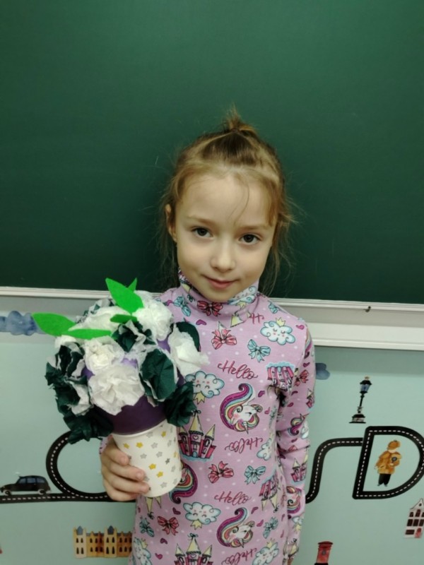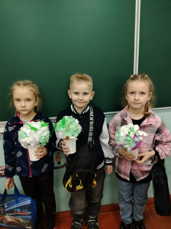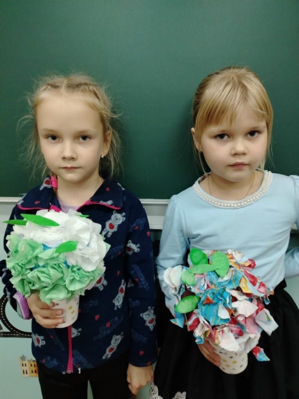 С ребятами для любимых мам, бабушек, сестрёнок создали из бумаги целую цветочную оранжерею